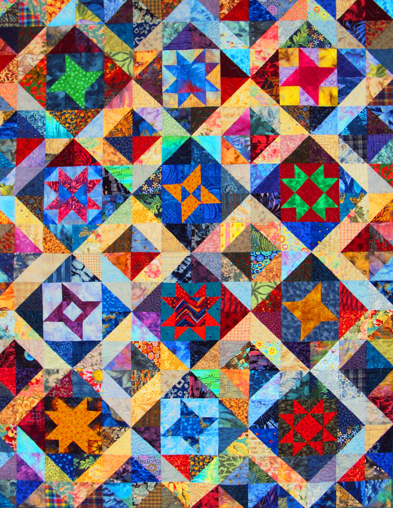 scrap quilts from a number of simple star blocks combined with scrap fabrics. Quick piecing and rotary cutting techniques